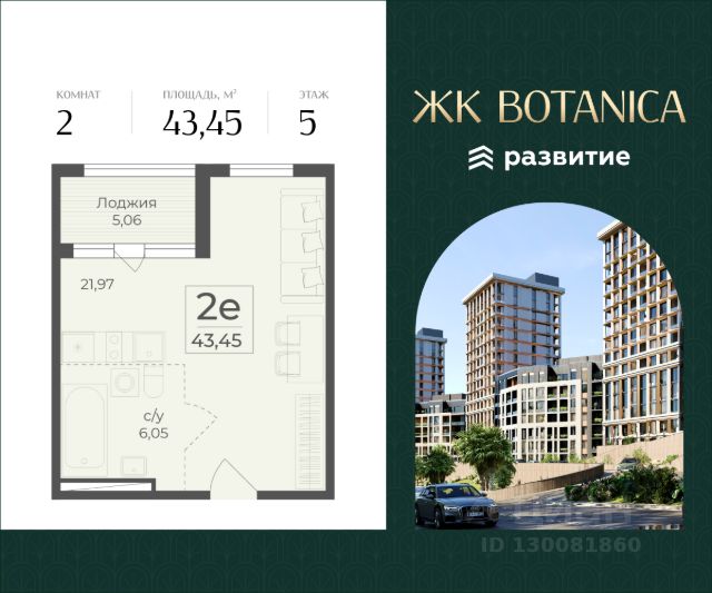 В продаже квартира площадью 42.59 кв. м с отделкой White Box, расположенная в жилом комплексе бизнес-класса Botanica. Проект от федерального застройщика ГК "Развитие" находится в живописном месте Ялты, вблизи Массандровского парка. Botanica - квартиры у моря для жизни и инвестиций.