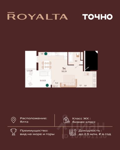 Номер объекта: #1/540934/17283 Купить квартиру в новостройке с отделкой В поселке городского типа Массандра республики Крым.