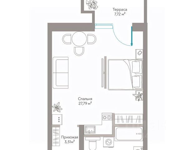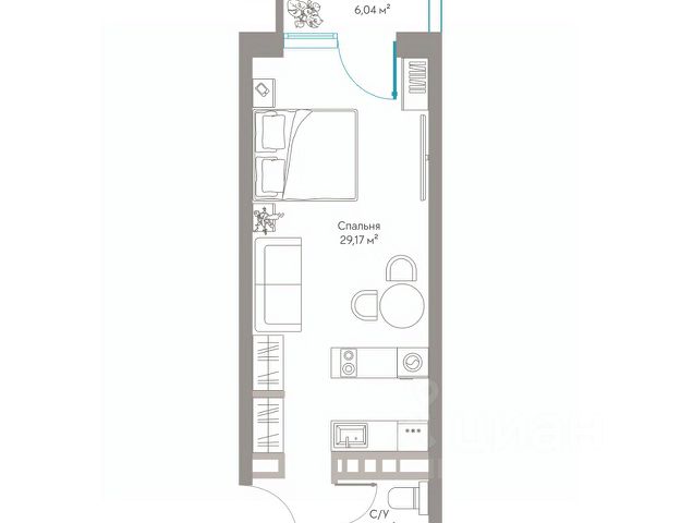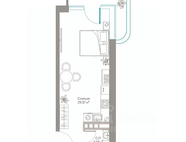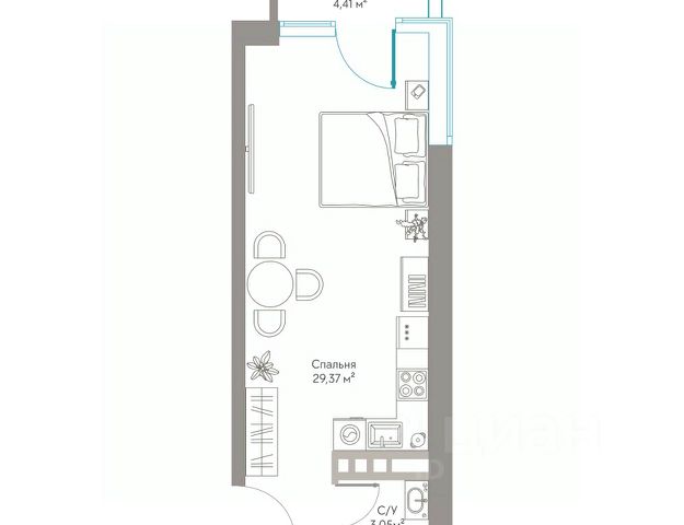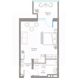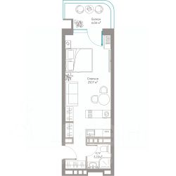 Студия площадью 24,5 кв.м. располагается на 4 этаже 12-этажного корпуса Н, студия Н-402.