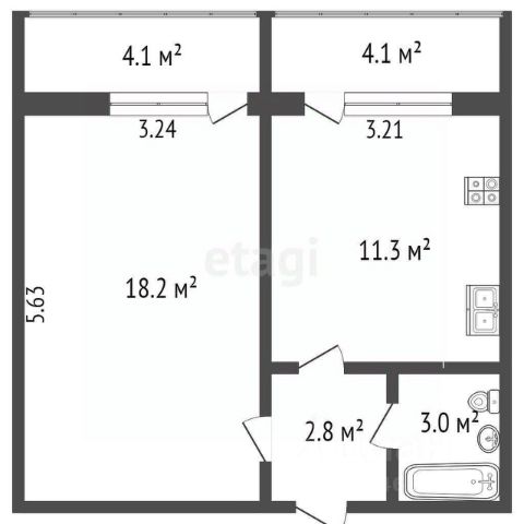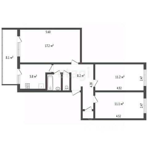 • ✅ Объект наибольшей площади: 57,3 м²