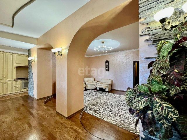 Планировка квартиры включает: спальню с гардеробной комнатой, кухню-гостиную со встроенной кухней и диваном, светлую комнату-столовую с двумя панорамными арочными окнами с видом во внутренний дворик, просторную прихожую со шкафом-купе, ванную комнату совмещенную с санузлом. в гостиной имеется дверь ,,в пол,, с видом во внутренний дворик.