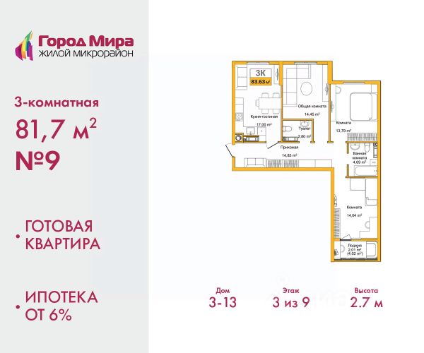 Цена посчитана с учётом скидки 3% при полной оплате или ипотеке. По всем вопросам звоните в офис продаж, мы вам все подробно расскажем. 2-комн. квартира с европланировкой и предчистовой отделкой в ЖМ "Город Мира" на 9 этаже. Общая площадь: 42.4 кв.м., жилая: 22.17 кв.м., суммарная площадь гостиной-столовой с кухонной зоной: 17.25 кв.м. Европланировка, кухня-гостиная - идеальный вариант для тех, кто любит часто принимать гостей. Комнаты изолированные, все окна выходят на одну сторону. В квартире один балкон, один совмещенный санузел. Высота потолков 2.7 м. "Город Мира" это масштабный жилой комплекс, созданный для тех, кто ценит комфорт, безопасность и гармонию с природой. Здесь продумана каждая деталь от удобной инфраструктуры до эргономичных планировок квартир. "Город Мира" победил в номинации "Лучший экологический проект года в сфере строительства" по версии премии Сrimеа Urbаn Аwаrds. Способы приобретения недвижимости в "Городе Мира": 1. Ипотека: семейная от 5,5%, военная, IT-ипотека, базовая ипотечная программа и комбо-ипотека. Одобрение заявки проходит сразу в отделе продаж. 2. Материнский капитал на первый взнос. 3. Рассрочка от застройщика - до июня 2028 года! Первоначальный взнос от 30%. 4. Военная ипотека. Участники НИС могут приобрести квартиры по спец.цене. Ключевые преимущества комплекса: удачное расположение зеленый район с благоприятным микроклиматом продуманное зонирование жилые кварталы, зоны отдыха и коммерческие объекты комфорт-класс высокое качество строительства и современные инженерные решения Почему выбирают "Город Мира": Образование и досуг: 2 детских сада (по 260 мест каждый) планируется строительство общеобразовательной школы детские и спортивные площадки в каждом дворе беседки для отдыха, зоны для выгула собак Ритейл и сервис: магазины, аптеки, медицинские центры фитнес-клубы, салоны красоты детские развивающие центры Парковки: гостевые парковки наземные и подземные паркинги Квартиры с продуманным комфортом: просторные планировки с гардеробными и 2-мя санузлами лоджии с остеклением автономное отопление выполнена стяжка пола Благоустройство территории: ландшафтный дизайн с зонами отдыха современные детские площадки стильные холлы с дизайнерской отделкой система видеонаблюдения для безопасности "Город Мира" это место, где созданы все условия для комфортной жизни. Выбирайте качество и продуманность в каждой детали! Дом монолитно-блочный, двухподъездный, высотой 9 этажей. Квартира находится во 2-й секции в корпусе 1. На этаже 5 квартир. В подъезде 1 пассажирский и 1 грузовой лифт. Окончание строительства - 1 квартал 2028 года. Оформление сделки по договору долевого участия. #ZmeSeZ Продам квартиру с балконом в Симферополе.