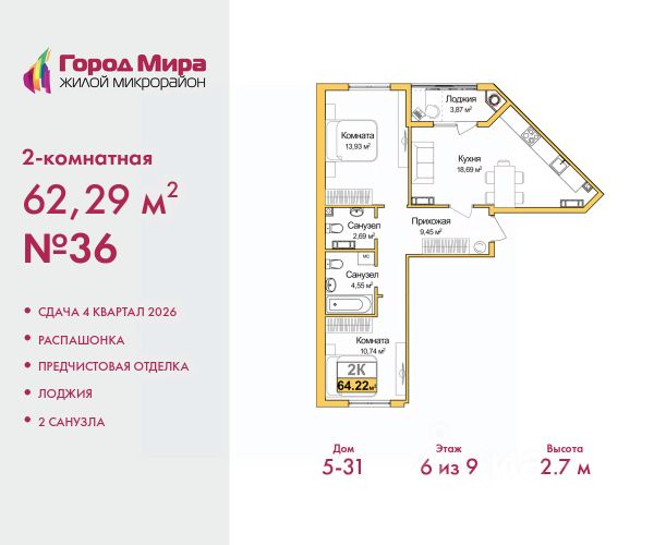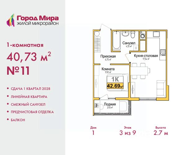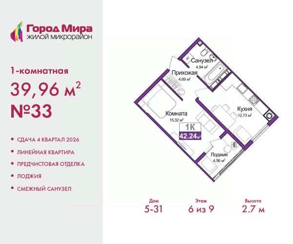 Трехкомнатная квартира с предчистовой отделкой в ЖМ "Город Мира" на 8 этаже. Общая площадь: 75.89 кв.м., жилая: 41.32 кв.м., площадь просторной кухни-столовой: 12.04 кв.м. Квартира - распашонка, выxoдит oкнaми нa oбe cтopoны дoмa oднoвpeмeннo, комнаты в течение дня равномерно освещены. В квартире одна лоджия, один совмещенный и один раздельный санузел. Высота потолков 2.7 м. "Город Мира" это масштабный жилой комплекс, созданный для тех, кто ценит комфорт, безопасность и гармонию с природой. Здесь продумана каждая деталь от удобной инфраструктуры до эргономичных планировок квартир. "Город Мира" победил в номинации "Лучший экологический проект года в сфере строительства" по версии премии Сrimеа Urbаn Аwаrds. Способы приобретения недвижимости в "Городе Мира": 1. Ипотека: семейная от 5,5%, военная, IT-ипотека, базовая ипотечная программа и комбо-ипотека. Одобрение заявки проходит сразу в отделе продаж. 2. Материнский капитал на первый взнос. 3. Рассрочка от застройщика - до июня 2028 года! Первоначальный взнос от 30%. 4. Военная ипотека. Участники НИС могут приобрести квартиры по спец.цене. Ключевые преимущества комплекса: удачное расположение зеленый район с благоприятным микроклиматом продуманное зонирование жилые кварталы, зоны отдыха и коммерческие объекты комфорт-класс высокое качество строительства и современные инженерные решения Почему выбирают "Город Мира": Образование и досуг: 2 детских сада (по 260 мест каждый) планируется строительство общеобразовательной школы детские и спортивные площадки в каждом дворе беседки для отдыха, зоны для выгула собак Ритейл и сервис: магазины, аптеки, медицинские центры фитнес-клубы, салоны красоты детские развивающие центры Парковки: гостевые парковки наземные и подземные паркинги Квартиры с продуманным комфортом: просторные планировки с гардеробными и 2-мя санузлами лоджии с остеклением автономное отопление выполнена стяжка пола Благоустройство территории: ландшафтный дизайн с зонами отдыха современные детские площадки стильные холлы с дизайнерской отделкой система видеонаблюдения для безопасности "Город Мира" это место, где созданы все условия для комфортной жизни. Выбирайте качество и продуманность в каждой детали! Дом монолитно-блочный, двухподъездный, высотой 9 этажей. Квартира находится в 1-й секции в корпусе 1. На этаже 5 квартир. В подъезде 1 пассажирский и 1 грузовой лифт. Окончание строительства - 1 квартал 2028 года. Оформление сделки по договору долевого участия. #2Megzo