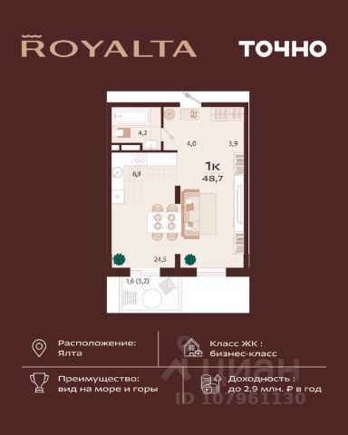 Выгодное предложение под инвестиции, цены вырастут до конца строительства неоднократно! Отличный вариант для жизни! Успейте приобрести до поднятия цен! Не упустите возможность, звоните! В продаже квартира на Южном берегу Крыма без комиссии для покупателя! Жилой комплекс находится на возвышенности недалеко от Массандровского парка, границы Ялтинского горно-лесного заповедника, что делает его идеальным местом для жителей. 7 минут до моря 10 минут до центра Ялты Насыщенная инфраструктура комплекса: 3 эксплуатируемых крыши, зона барбекю, рестораны, бассейн, парковая зона и т.д.. Комфортные условия приобретения, все виды оплаты!!! Звоните, пишите, отвечу на все вопросы! Профессиональное сопровождение до получения прав собственности! Электронная и дистанционная регистрация сделки!