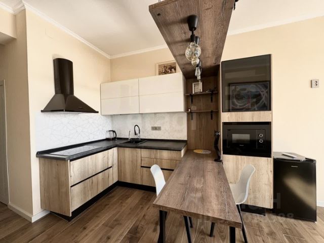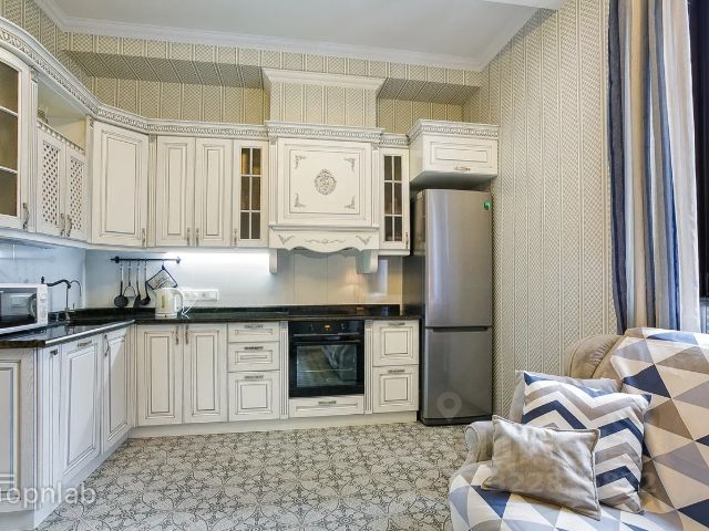 Планировка квартиры включает: спальню с гардеробной комнатой, кухню-гостиную со встроенной кухней и диваном, светлую комнату-столовую с двумя панорамными арочными окнами с видом во внутренний дворик, просторную прихожую со шкафом-купе, ванную комнату совмещенную с санузлом. в гостиной имеется дверь ,,в пол,, с видом во внутренний дворик.