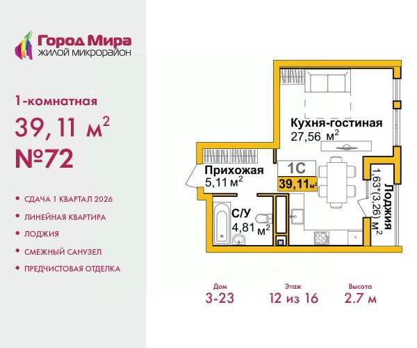 1-комн. квартира от застройщика с предчистовой отделкой в ЖМ "Город Мира" на 15 этаже. Общая площадь: 39.11 кв.м., жилая: 22.56 кв.м., площадь кухни: 5 кв.м. Все окна выходят на одну сторону. В квартире одна лоджия, один совмещенный санузел. Высота потолков 2.7 м. Жилой комплекс "Город Мира" комфорт и гармония в современном формате. "Город Мира" это масштабный жилой комплекс, созданный для тех, кто ценит комфорт, безопасность и гармонию с природой. Здесь продумана каждая деталь от удобной инфраструктуры до эргономичных планировок квартир. В 2024 году микрорайон "Город Мира" победил в номинации "Лучший экологический проект года в сфере строительства" по версии премии Crimea Urban Awards. Ключевые преимущества комплекса: - удачное расположение зеленый район с благоприятным микроклиматом - продуманное зонирование жилые кварталы, зоны отдыха и коммерческие объекты - комфорт-класс высокое качество строительства и современные инженерные решения Инфраструктура "Города Мира": Образование и досуг: - 2 детских сада (по 260 мест каждый) - планируется строительство общеобразовательной школы - детские и спортивные площадки в каждом дворе - беседки для отдыха, зоны для выгула собак Ритейл и сервис: - магазины, аптеки, медицинские центры - фитнес-клубы, салоны красоты - детские развивающие центры Парковки: - гостевые парковки - наземные и подземные паркинги Квартиры с продуманным комфортом: - просторные планировки с кладовыми и колясочными - лоджии с остеклением - автономное отопление (по 23 дому: индивидуальное отопление) - выполнена стяжка пола (по 3, 4, 20, 21, 22 домам: выполненная стяжка пола и штукатурка стен) - Консьерж-сервис для дополнительного удобства Благоустройство территории: - ландшафтный дизайн с зонами отдыха - современные детские площадки - стильные холлы с дизайнерской отделкой - система видеонаблюдения для безопасности "Город Мира" это место, где созданы все условия для комфортной жизни. Выбирайте качество и продуманность в каждой детали! Квартира находится в корпусе 3_23. Дом монолитный, одноподъездный, высотой 16 этажей. В подъезде 1 пассажирский и 1 грузовой лифт. Окончание строительства - 1 квартал 2026 года. Оформление сделки по договору долевого участия. #2sS98B Купить квартиру с индивидуальным отоплением в Симферополе.