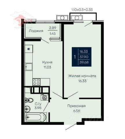 Общая площадь 27,3 кв. м.