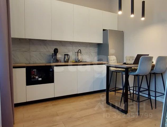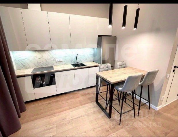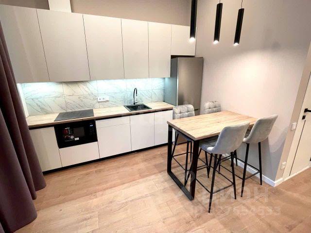 встроенной кухней, включая: холодильник, микроволновую печь, варочную панель, вытяжную систему;