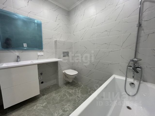 Санузел, оборудованный ванной/душевой кабиной, смесителем с душевой лейкой, раковиной, смесителем, унитазом (инсталляция);