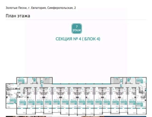 Продаётся студия-апартаменты в сданном доме (Дом 2), срок сдачи: II-кв. 2024, общей площадью 50.6 кв.м., на 3 этаже. Расположение, транспортная доступностьЖК "Золотые пески" расположен в новом районе города Евпатории. Симферопольская улица, переходящая в одноименное шоссе, которое далее становится Евпаторийским шоссе, в направлении города Саки — это полоса между озером Сасык (с одной стороны) и Черным морем (со стороны новостройки). Евпатория известна своими пляжами, наилучшие из которых — песчаные, здесь находится природная широкая полоса песка на протяжении всей трассы.От исторического центра, набережной Евпатории (ориентир — мечеть Джума-Джами), до ЖК "Золотые пески" меньше 5 км. Жилой комплекс очень удобно расположен вблизи автобусных остановок и железнодорожной станции "54-й км". Электричка идет до ж/д вокзала Евпатории около двенадцати минут.ИнфраструктураАпартаменты "Золотые пески" спроектированы как мини-город: жильцы, владельцы или гости апартаментов должны быть полностью обеспечены всем для проживания и отдыха. СПА-центры, кафе и бары, спортивные залы и детские игровые комнаты будут к услугам проживающих в жилом комплексе. Теннисные корты, кинотеатр и открытые детские площадки также предусмотрены проектом.Евпатория с ее развитой инфраструктурой находится недалеко, всего в пяти километрах. В городе расположены медицинские и общеобразовательные учреждения, салоны красоты и рестораны, спортивные комплексы. Несколько километров на машине или автобусе по Симферопольскому шоссе в другую от Евпатории сторону, к городу Саки, — и к услугам жильцов аквапарк "Банановая республика", один из самых известных в этом районе Крыма. Грязелечебницы и озеро Мойнаки находятся в ближайшем к ЖК районе Евпатории, в частных и государственных клиниках предлагаются циклы оздоравливающих ванн и процедур. Озеро и лиман напротив — место, где живет множество птиц, в том числе и лебеди.Надежность застройщикаКрымский застройщик "Монолит" известен на полуострове как строительная компания, активно растущая в профессиональной сфере. В данный момент в портфеле застройщика четыре готовых дома, строится 25 домов. Застройщик на сайте проекта выкладывает актуальные фото и видео, информирует о ходе строительных работ. Сроки не выходят за пределы, указанные в документации.АрхитектураЖК "Золотые пески" возводится в несколько очередей, сдается в эксплуатацию посекционно. По конструкции это жилая новостройка с помещениями под коммерческий найм. Технология постройки — монолитно-каркасная, основа корпусов — железобетон. В каждой из трех секций девять этажей. Фасадная часть отделана ракушечником и штукатуркой. На крыше металлочерепица, есть террасы. Апартаменты пригодны для круглогодичного проживания благодаря собственной котельной, предусмотренной на территории жилого комплекса.В корпусе имеются 1,2,3 и 4-х комнатные апартаменты площадью от 43 до 207 квадратных метров. Планировки просторные, много остекления и света в комнатах, есть лоджии, кухни не менее чем 6 кв. м. Сдавались апарт