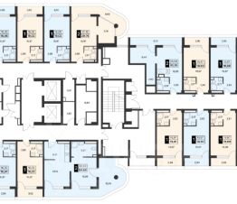 В комплексе предоставлена широкая линейка планировочных решений от студий до двухуровневых таунхаусов на первом этаже со своей придомовой территорией и пентхаусов на последнем этаже.