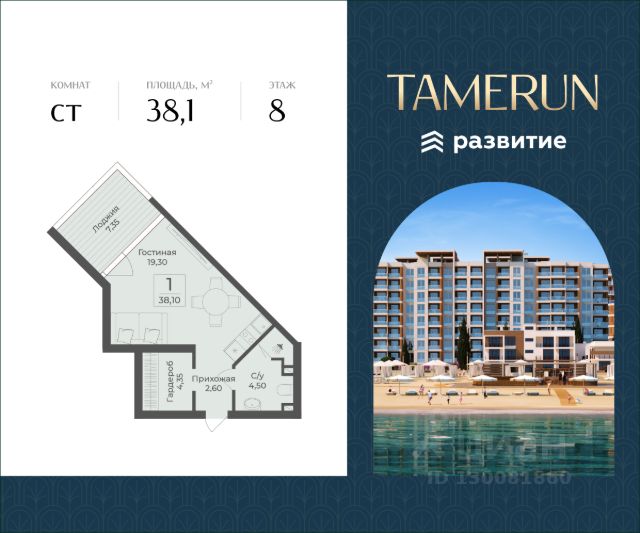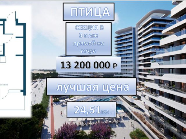 В продаже s комнатный апартамент площадью 48.18 кв. м, без отделки. Апартамент расположен в апарт-комплексе Tamerun от ГК "Развитие". Tamerun - морская резиденция на Западном берегу Крыма, между городами Евпатория и Саки. Апарт-комплекс расположен на первой береговой линии в живописной бухте Каламийского залива, между Черным морем и розовым озером Сасык. В рамках реализации проекта предусмотрено 1213 доходных апартаментов с первоклассным отельным и санаторно-курортным сервисом. Клубная инфраструктура, историческая локация, интерьеры от ведущих дизайнеров - все это и многое другое ждет вас в солнечной резиденции Tamerun. Расположение Пешком: - 15 мин. до Ж/Д станции "Техникум"; - 20 мин. до Ж/Д станции "Прибрежная"; - 25 мин. до Пирса у озера Сасык-Сиваш. На автомобиле: - 5 мин. до Симферопольского шоссе; - 10 мин. до города Саки; - 20 мин. до Евпатории; - 45 мин. до аэропорта имени И. К. Айвазовского. Благоустройство - собственный клубный пляж; - развлекательный центр; - 2 открытых и 1 закрытый бассейн; - медицинский SPA-комплекс; - фитнес-центр с залами для йоги и гимнастики; - площадки для тенниса, футбола и волейбола; - амфитеатр на свежем морском воздухе; - лаунж-зона и прогулочные дорожки; - детский клуб с кинотеатром; - батуты, лабиринты и скалодромы для подростков; - конференц-зал на 50 человек и переговорные кабинеты; - более 100 растений в приватном дворе; - круглосуточный консьерж-сервис; - подземный паркинг на 188 машино-мест с автомойкой; - наземная гостевая парковка на 259 машино-мест; - летнее кафе, 3 ресторана и супермаркет прямо в доме. Окружение - Сасыкский заказник, крупнейшее в Крыму соленое розовое озеро Сасык-Сиваш, песчаные пляжи протяженностью в 150 метров; - главная мечеть Евпатории Джума-Джами, Собор Николая Чудотворца, Комплекс Караимских кенас; - множество другой повседневной инфраструктуры в ближайшем городе Саки.