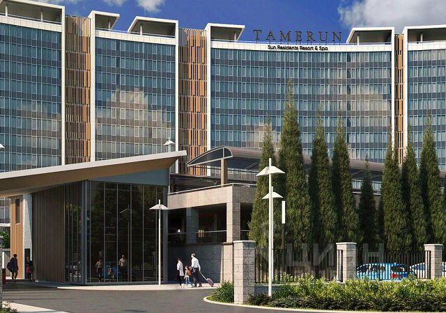 "Tamerun" - морская резиденция на Западном берегу Крыма, между городами Евпатория и Саки. Резиденция "Tamerun" представляет собой современный комплекс из четырёх корпусов высотой 9 и 12 этажей, гармонично вписанных в живописный ландшафт. Интерьеры выполнены в изысканном элегантном стиле с применением премиальных материалов — натурального мрамора, ценных пород дерева и высококачественной кожи. Просторные помещения наполнены естественным светом благодаря большим панорамным окнам, открывающим завораживающие виды на Черное море. Атмосфера резиденции пропитана уютом и гармонией, создавая идеальные условия для комфортной жизни и отдыха. Рядом с "Tamerun" находится Сасыкский заказник и самое крупное в Крыму солёное розовое озеро Сасык-Сиваш. На территории резиденции находится открытый бассейн с подогревом, окружённый шезлонгами и зоной отдыха, где можно наслаждаться теплыми лучами солнца и свежим морским бризом. Для любителей активного отдыха предусмотрен теннисный корт и фитнес-зал, оборудованный новейшими тренажёрами. В солнечной резиденции есть всё для жизни и интересного отдыха: собственный песчаный пляж и теннисный корт, бассейны с морской водой, рестораны и летнее кафе, зона СПА и фитнес-центр, общественно-деловые пространства и подземный паркинг. Профессиональная сервисная компания с международным опытом возьмёт на себя все операционные вопросы по управлению и эксплуатации, обеспечивая 5-звёздочный уровень обслуживания.