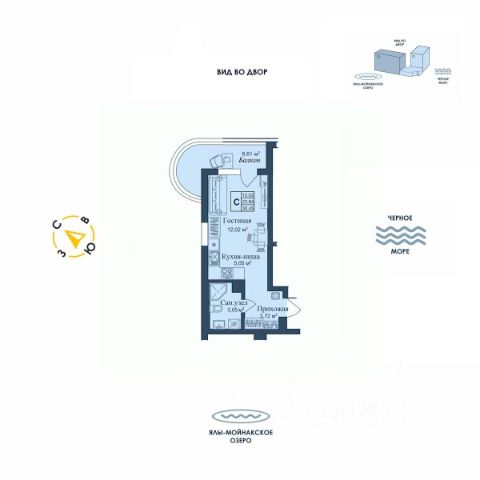• ✓ В базе Циан 19 квартир-студий на 10 этаже в поселке городского типа Заозерное республики Крым