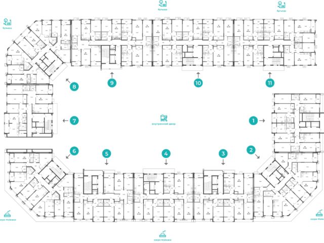 Буйство цвета южной флоры в озеленении квартала поражает воображение! Деревья с сочными фруктами и яркие цветы с тонким ароматом подарят вам ощущение счастья и бесконечного лета.