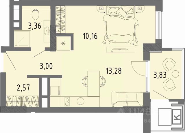 Пространство квартиры организовано таким образом, чтобы обеспечить комфортное проживание: явный пример тщательного подхода к планированию каждого квадратного метра. Совмещённый санузел выполнен с использованием современных материалов, что добавляет дополнительное ощущение стиля и уюта.