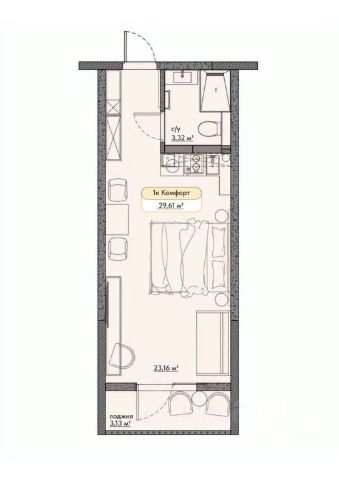 Продаётся квартира 311 площадью 31,74 м2 в новом ЖК СОК