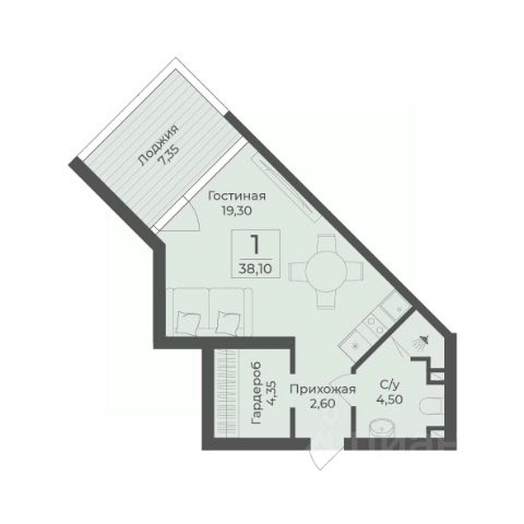 • ✅ Объект наибольшей площади: 44,2 м²