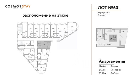 COSMOS STAY HIDDEN YALTA - это комплекс апартаментов из 5 корпусов для отдыха с собственной развитой инфраструктурой. Находится в Ялте у подножья горы Могаби на южном берегу Крыма, вблизи с живописным горно-лесным заповедником. Из апартаментов комплекса открываются завораживающие виды на горные вершины и Чёрное море. В шаговой доступности могабинские озера. Находится на подножии Ай-Петри, что позволяет комфортно добраться до горных склонов. До центра Ялты 10 минут на машине, как и до моря. Концепция апарт-комплекса предполагает круглогодичный комфортный отдых в формате retreat, с заботой о ментальном и физическом здоровье. Всё для Вашего восстановления и перезагрузки, для размеренной и комфортной жизни. Целебный морской воздух и благодатный климат. В комплексе создана атмосфера респектабельной среды для жизни: - собственная инфраструктура; - свой зеленый двор; - безопасность; - детские пространства; - собственная инфраструктура; - свой зеленый двор; - безопасность; - детские пространства; - лаунж-зоны; - будет присвоен статус 3 звезды и работать отельный оператор; - пространства для медитаций и занятий йогой; - ресторан; - индивидуальные келлеры для габаритного инвентаря; - всесезонный бассейн; Консьерж-сервис полного цикла обслуживания с опцией управления недвижимостью - разрешит любой возникающий вопрос. Строительство ведется при проектном финансировании СБЕРБАНКА, ФЗ-214. Продажа через эскроу-счет без комиссий. Завершение строительства - 3 квартал 2026 года Передача ключей до 31.12.2026 Ремонт и оснащение апартаментов: декабрь 2026-апрель 2027 Запуск апарт-отеля в управление - июнь 2027