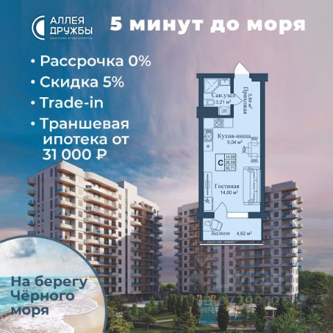 Апарт-комплекс Аллея Дружбы в Евпатории — это не просто метры у моря. Это защищённый, надёжный актив с высоким арендным потенциалом и понятной доходностью. Главные преимущества для инвестора — Гарантированный пассив: комплекс под управлением премиальной УК с сервисом 24/7 — от заселения до клининга. — Первое побережье: всего 5 минут пешком до песчаного пляжа. — Высокий спрос на аренду: Евпатория — всесезонный курорт с оздоровительным профилем. — Бизнес-класс с полным спектром сервиса: от хамама и бассейна до коворкинга и лаунж-кинотеатра. — Гибкие условия оплаты: рассрочка до 2 лет без удорожания, от 20% первого взноса. — Точные цифры — без иллюзий Прозрачные расчёты доходности, опирающиеся на реальные показатели рынка. Без обещаний "золотых гор" — только то, что можно проверить и спрогнозировать. Что вы получаете — Апартаменты бизнес-класса с отделкой на выбор — Панорамное остекление и террасы с видом на море — Приватная территория, подземный паркинг, видеонаблюдение — Закрытый двор без машин, премиальные лобби, зона ресепшн — Возможность совмещать отдых у моря и стабильный доход Формула спокойной старости Инфляция растёт, а недвижимость — надёжно защищает капитал. "Аллея Дружбы" — это инвестиция, которую можно передать детям, а пока — жить на пассиве и не беспокоиться о будущем. Успейте до роста цен Спрос на комплекс растёт. Сейчас действуют выгодные условия рассрочки и скидка 5% при полной оплате. Условия покупки: — Рассрочка до 30.06.2027: от 30% ПВ, без удорожания — Годовая рассрочка: 20% ПВ, далее равными долями — Ипотека от Сбер, трейд-ин, скидки при 100% оплате — Бесплатная бронь на 3 дня, платная — на 30 (30 тыс ₽) Аллея Дружбы — апартаменты у моря, которые не требуют усилий, но приносят результат. Инвестируйте спокойно. Живите достойно.