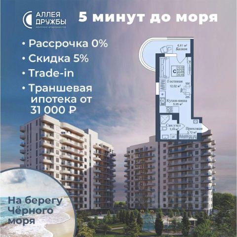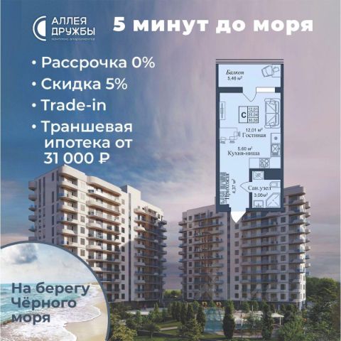 Апарт-комплекс Аллея Дружбы в Евпатории — это не просто метры у моря. Это защищённый, надёжный актив с высоким арендным потенциалом и понятной доходностью. Главные преимущества для инвестора — Гарантированный пассив: комплекс под управлением премиальной УК с сервисом 24/7 — от заселения до клининга. — Первое побережье: всего 5 минут пешком до песчаного пляжа. — Высокий спрос на аренду: Евпатория — всесезонный курорт с оздоровительным профилем. — Бизнес-класс с полным спектром сервиса: от хамама и бассейна до коворкинга и лаунж-кинотеатра. — Гибкие условия оплаты: рассрочка до 2 лет без удорожания, от 20% первого взноса. — Точные цифры — без иллюзий Прозрачные расчёты доходности, опирающиеся на реальные показатели рынка. Без обещаний "золотых гор" — только то, что можно проверить и спрогнозировать. Что вы получаете — Апартаменты бизнес-класса с отделкой на выбор — Панорамное остекление и террасы с видом на море — Приватная территория, подземный паркинг, видеонаблюдение — Закрытый двор без машин, премиальные лобби, зона ресепшн — Возможность совмещать отдых у моря и стабильный доход Формула спокойной старости Инфляция растёт, а недвижимость — надёжно защищает капитал. "Аллея Дружбы" — это инвестиция, которую можно передать детям, а пока — жить на пассиве и не беспокоиться о будущем. Успейте до роста цен Спрос на комплекс растёт. Сейчас действуют выгодные условия рассрочки и скидка 5% при полной оплате. Условия покупки: — Рассрочка до 30.06.2027: от 30% ПВ, без удорожания — Годовая рассрочка: 20% ПВ, далее равными долями — Ипотека от Сбер, трейд-ин, скидки при 100% оплате — Бесплатная бронь на 3 дня, платная — на 30 (30 тыс ₽) Аллея Дружбы — апартаменты у моря, которые не требуют усилий, но приносят результат. Инвестируйте спокойно. Живите достойно.