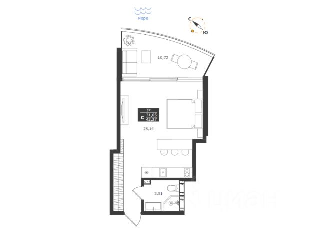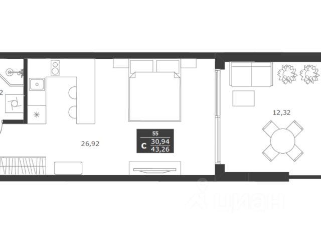 Авторское планировочное решение, грамотно продуманно и максимально функционально, площадь позволяет сделать 2 комнаты, 1 спальню, 1 санузел, 1 просторную террасу с 3 индивидуальными выходами из каждой комнаты, всё это позволяет создать апартамент вашей мечты.