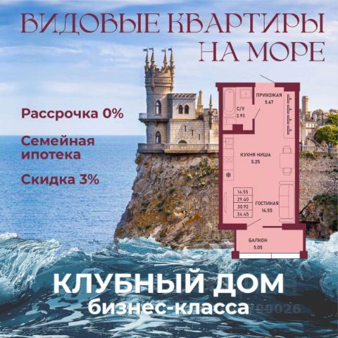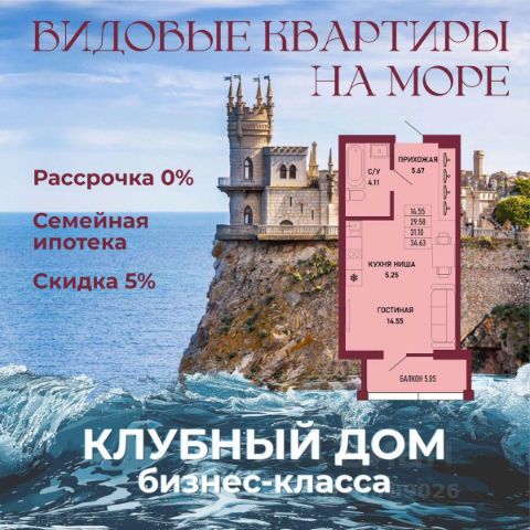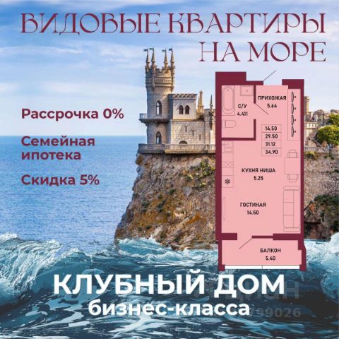 ЗВОНИТЕ ПРЯМО СЕЙЧАС, ЧТОБЫ ЗАБРОНИРОВАТЬ ЛУЧШУЮ КВАРТИРУ! Цена указана со скидкой 5% при условии 100% оплаты либо ипотека. - 80% ВИДОВЫХ КВАРТИРА НА МОРЕ ИЛИ ГОРЫ - Рассрочка 0% - Ипотека от СБЕРБАНКА - Доходность инвестиций от 40% годовых. - Безопасная сделка по ФЗ-214/эскроу-счёта Клубный дом "Ялта" — это воплощение изысканной жизни, где гармонично сочетаются статусность бизнес-класса, уют курортного отдыха и передовые технологии для комфортного проживания. Этот жилой комплекс создан для тех, кто ценит безупречное качество, безопасность и эстетику в каждой детали. Архитектура и дизайн * Современное монолитное 16-этажное здание * Фасады благородных оттенков: чистый белый, переливы шампань и тёплое золото * Первые этажи комплекса представлены в отделке рустовым камнем * Авторские интерьеры мест общего пользования * В темное время суток здания подчёркивает подсветка Характеристики квартиры и мест общего пользования * 80% лотов — с панорамными видами на море и горы. * Просторные балконы * Вместительные гардеробные и кухни-гостиные * Высокие потолки квартир 2,8 м Инфраструктура для комфортной жизни * Инфинити-бассейн * Ландшафтный дизайн и озеленение придомовой территории комплекса * Скоростные грузопассажирские лифты, соответствующие стандартам 5*-отелей, с прямым доступом в паркинг. * Кафетерий и магазин у дома * Детский веревочный комплекс "Парк-Маугли" * Скалодром * Финская сауна, хамам * На 1 этаже жилого комплекса - лапомойка и гостевой туалет Безопасность и технологии спокойствия * Закрытая территория, контролируемый доступ * Видеонаблюдение по всему периметру комплекса * Электронные домофоны с индивидуальными ключами с доступом * Безбарьерная среда * Подземный паркинг * Келлеры * Зоны хранения для велосипедов, самокатов и колясок * Мотоместа Коммуникации и инженерия * Автономная газовая котельная на крыше * Телеметрия * Класс энергоэффективности жилого комплекса "А+" * Места для кондиционеров и практическое решение для маскировки коммуникаций Расположение и ближайшие пляжи * 2,9 км до моря 10 мин на машине * 2 км от центра Ялты * Пляж Приморский — 30 мин пешком / 10 мин на авто * Пляж Массандровский — 20 мин на машине