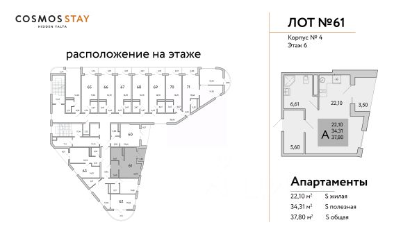 ГОТОВЫЙ БИЗНЕС ПОД КЛЮЧ ДОХОД ОТ 1 000 000 руб. с первого года деятельности отеля. Продаются апартаменты от Застройщика в строящемся комплексе COSMOS STAY HIDDEN YALTA, под управлением ведущего отельера в России COSMOS HOTEL GROUP (COSMOS HOTEL GROUP это Аккредитованная Управляющая компания международных гостиничных операторов). ИНВЕСТИЦИОННЫЕ ПРЕИМУЩЕСТВА КОМПЛЕКСА: - Первый COSMOS STAY в Ялте- Гостиничный номер с ремонтом, мебелью и техникой - Управление номерным фондом командой COSMOS- Прозрачность управления - Гарантированная круглогодичная загрузка комплекса - Глубокое знание и владение бизнесом - БИЗНЕС-МОДЕЛЬ Будущего: круглогодичный и пассивный доход - Среднегодовая доходность 22 % О КОМПЛЕКСЕ COSMOS STAY HIDDEN YALTA это комплекс апартаментов из 5 корпусов для отдыха с собственной развитой инфраструктурой. Находится в Ялте у подножья горы Могаби на южном берегу Крыма, вблизи с живописным горнолесным заповедником, у подножья горы Ай-Петри. Из апартаментов комплекса открываются завораживающие виды на горные вершины и Черное море. ЭТАЖНОСТЬ КОРПУСОВ: до 9 этажей Срок сдачи объекта: IV-кв. 2026г. Квадратура апартаментов: от 25м2 до 80,4 м2. Апартаменты с отделкой и мебелью. ИНФРАСТРУКТУРА КОМПЛЕКСА - Лаунж-зоны - Спа-центр - Детские пространства и площадки для спорта - Всесезонный бассейн - Пространства для медитаций и занятий йогой - Ресторан и Лобби - Супермаркеты и аптека - Консьерж-сервис полного цикла обслуживания с управлением - Экотропы для прогулок - Канатная дорога в 20 минутах КОНЦЕПЦИЯ АПАРТ-КОМПЛЕКСА Предлагает уникальный формат отдыха в стиле Retreat. Здесь созданы идеальные условия комфортного отдыха, заботы о вашем ментальном и физическом здоровье, вдали от городской суеты, в окружении векового леса и природы. Здесь вы найдете всё необходимое для восстановления и перезагрузки. Рассрочка от застройщика, подробности уточняйте в Отделе продаж. Строительство ведется при проектном финансировании СБЕРБАНКА, согласно ФЗ-214. Продажа через эскроу-счета без комиссий и переплат.