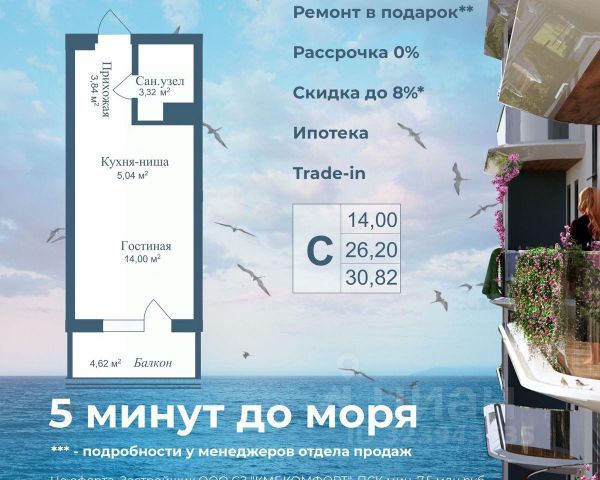 Продаются апартаменты в построенном комплексе. Срок сдачи 4 квартал 2024 года. Альба Дель Маре это комплекс апартаментов бизнес-класса с развитой инфраструктурой. Уютные здания переменной этажности строятся в 5 минутах ходьбы (385 метров) от одного из лучших пляжей Евпатории "Супер Аква Бич". Широкая береговая линия, места для активного отдыха и зоны релакса позволят насладиться отдыхом на любой вкус. Архитектурное решение комплекса создает истинное ощущение Средиземноморья и присутствия на дорогом курорте: скатные черепичные крыши, козырьки и навесы-перголы, арочные завершения проемов, цветовая палитра отделки и фасадов, где используются оттенки желтого, охры, терракоты и бежевого. Переменная этажность здания формирует камерность проекта, создавая прекрасные видовые характеристики для каждого апартамента. Просторные террасы с видом на море, патио с собственным выходом к бассейну на первых этажах комплекса, детская и спортивная площадки, ландшафтный дизайн здесь все создано для роскошного отдыха и расслабления. Территория комплекса апартаментов закрыта и находится под круглосуточным видеонаблюдением, что позволит резидентам и гостям чувствовать безопасность проживания. Концепция комплекса: комфорт проживания с первых дней заселения. Реализация апартаментов осуществляется с полной отделкой под ключ. Собственники апартаментов имеют возможность поручить управление недвижимостью профессиональному оператору, что позволит получать стабильный доход. Автономная газовая котельная позволит не зависеть от внешних отключений отопления., парковочные места на закрытой территории комплекса обеспечат безопасность вашему автомобилю, система центрального кондиционирования создаст комфортную температуру в каждом номере. Жилой комплекс реализуется в соответствии с 214 ФЗ.