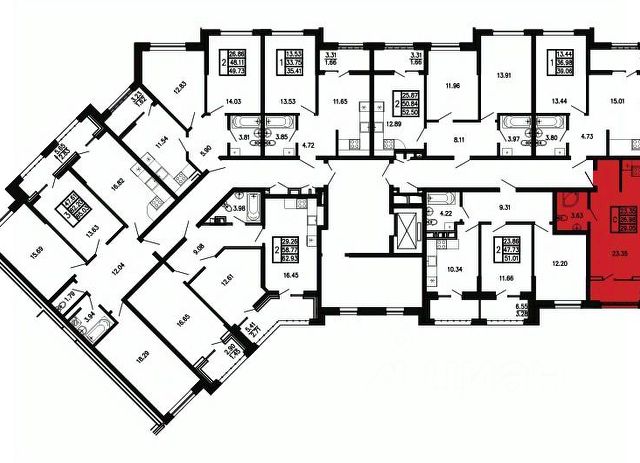 В каждом корпусе предусмотрена одна входная группа с нишей для шкафа или гардеробной и уборными. В каждом корпусе установлено по 4 лифта: по 2 пассажирских и грузопассажирских.