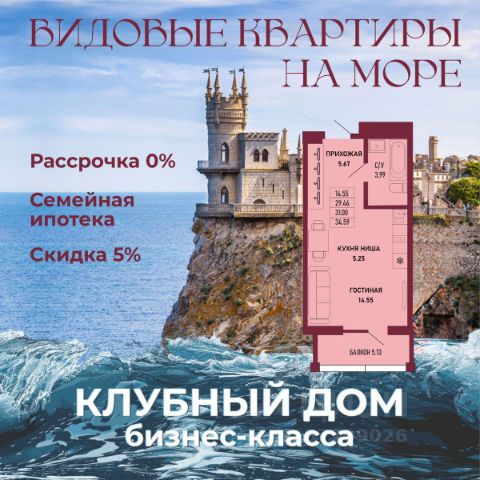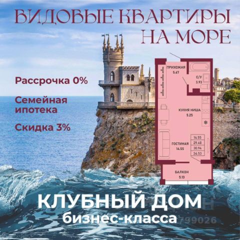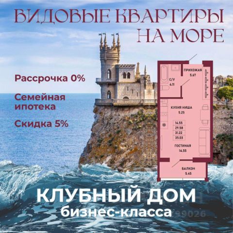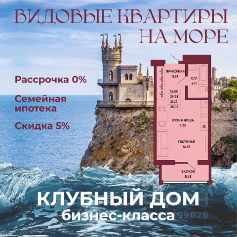 ЗВОНИТЕ ПРЯМО СЕЙЧАС, ЧТОБЫ ЗАБРОНИРОВАТЬ ЛУЧШУЮ КВАРТИРУ! Цена указана со скидкой 5% при условии 100% оплаты либо ипотека. - 80% ВИДОВЫХ КВАРТИРА НА МОРЕ ИЛИ ГОРЫ - Рассрочка 0% - Ипотека от СБЕРБАНКА - Доходность инвестиций от 40% годовых. - Безопасная сделка по ФЗ-214/эскроу-счёта Клубный дом "Ялта" — это воплощение изысканной жизни, где гармонично сочетаются статусность бизнес-класса, уют курортного отдыха и передовые технологии для комфортного проживания. Этот жилой комплекс создан для тех, кто ценит безупречное качество, безопасность и эстетику в каждой детали. Архитектура и дизайн * Современное монолитное 16-этажное здание * Фасады благородных оттенков: чистый белый, переливы шампань и тёплое золото * Первые этажи комплекса представлены в отделке рустовым камнем * Авторские интерьеры мест общего пользования * В темное время суток здания подчёркивает подсветка Характеристики квартиры и мест общего пользования * 80% лотов — с панорамными видами на море и горы. * Просторные балконы * Вместительные гардеробные и кухни-гостиные * Высокие потолки квартир 2,8 м Инфраструктура для комфортной жизни * Инфинити-бассейн * Ландшафтный дизайн и озеленение придомовой территории комплекса * Скоростные грузопассажирские лифты, соответствующие стандартам 5*-отелей, с прямым доступом в паркинг. * Кафетерий и магазин у дома * Детский веревочный комплекс "Парк-Маугли" * Скалодром * Финская сауна, хамам * На 1 этаже жилого комплекса - лапомойка и гостевой туалет Безопасность и технологии спокойствия * Закрытая территория, контролируемый доступ * Видеонаблюдение по всему периметру комплекса * Электронные домофоны с индивидуальными ключами с доступом * Безбарьерная среда * Подземный паркинг * Келлеры * Зоны хранения для велосипедов, самокатов и колясок * Мотоместа Коммуникации и инженерия * Автономная газовая котельная на крыше * Телеметрия * Класс энергоэффективности жилого комплекса "А+" * Места для кондиционеров и практическое решение для маскировки коммуникаций Расположение и ближайшие пляжи * 2,9 км до моря 10 мин на машине * 2 км от центра Ялты * Пляж Приморский — 30 мин пешком / 10 мин на авто * Пляж Массандровский — 20 мин на машине