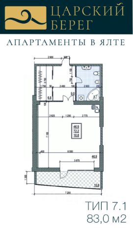 Продаётся студия-апартаменты в строящемся доме (Корпус 1), срок сдачи: I-кв. 2026, общей площадью 77.7 кв.м., на 9 этаже. Компания "Регион-Инвест Недвижимость" представляет новый комплекс апартаментов "Царский берег" в Крыму. Апарт-отель находится в нескольких десятках метров от знаменитой Царской тропы (Солнечная тропа), по которой император регулярно совершал пешие прогулки. Неподалёку, в Ливадии, располагалась императорская резиденция Романовых, а шикарные дачи российской элиты строились вдоль всего южного берега Крыма. Приобретая апартаменты комплекса "Царский берег", Вы становитесь не только обладателем элитной недвижимости, в Крыму, на берегу Черного моря, но и имеете возможность приобщится к части российской истории. Горы, море, солнце, мягкий климат делают это место идеальным, чтобы связать с ним свою жизнь. Близость ухоженных и оборудованных мелкогалечных пляжей, чистота приветливого моря, сочетание горного воздуха и морских бризов создают великолепные условия для отдыха и укрепления здоровья. В шаговой доступности от комплекса "Царский берег" расположен уникальный Золотой пляж, заслуженно считающийся самым чистым в регионе. Находящиеся всего в 100 метрах от комплекса санаторий "Горный" и санаторий "Курпаты", также порадуют широким спектром услуг и помогут разнообразить досуг жителей. Здесь есть ресторан, кафе, теннисные корты, танцплощадки, бильярд, медицинские кабинеты, фитнес-зал и многое другое. Территория же самого апарт-отеля "Царский берег" сможет похвастаться открытым кафе с потрясающим видом на море и СПА-салоном с оздоровительными процедурами. Немалое удобство для жителей и гостей доставит и вместительный трехуровневый паркинг на нижних этажах комплекса. Панорамный вид (около 270 градусов) на море и отличный вид на горно-лесной заповедник будут радовать Вас постоянно. Комплекс "Царский берег" - это апартаменты различной площади: от 63 до 140 кв.м. Высота потолков - 3 метра. На Ваш выбор мы представляем 91 апартамент (со 2 по 14 этажи). На каждом этаже запроектировано всего 7 типовых планировок, которые смогут удовлетворить самый взыскательный вкус. Свободная планировка этих апартаментов позволит Вам организовать пространство в любом стиле. Можно спланировать будуар, итальянскую гостиную, японскую спальню и даже тренажерный зал. Открытые террасы, застекленные лоджии, панорамные окна, остекленные от пола до потолка, - всё это даёт отличную возможность жителям комплекса наслаждаться потрясающими панорамами крымских гор и Чёрного моря даже с нижних этажей дома.