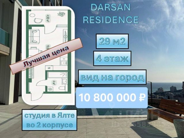 Студия с МЕБЕЛЬЮ И ТЕХНИКОЙ в комплексе премиум класса "Резиденция Дарсан" на южном берегу Крыма!