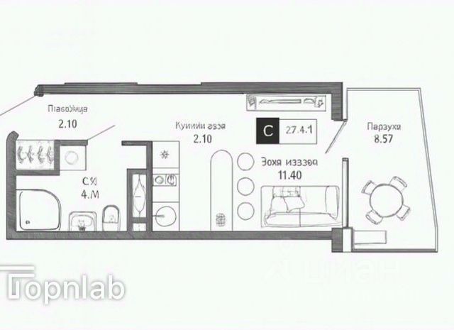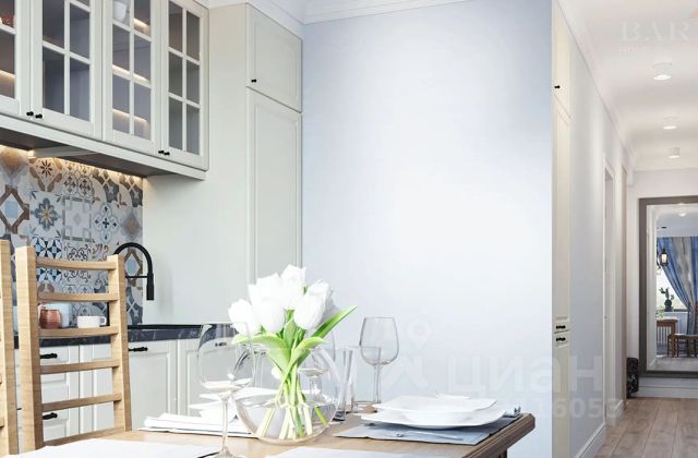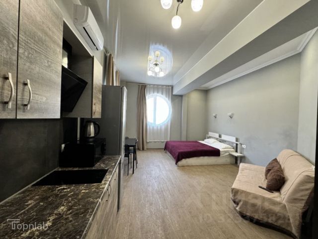 В Студии: встраиваемая микроволновка, духовой шкаф, индукционная печь, холодильник и телевизор. Установлен отдельный кран для питьевой воды /автомат питьевой воды Аквафор Морион DWM-102S. В кухонной зоне установлена подсветка и дополнительное освещение.