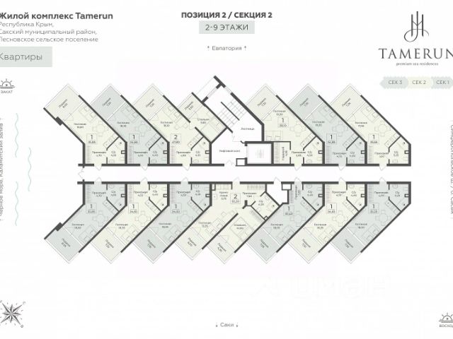 Новый современный апартаментный курортный кластер бизнес-класса на первой береговой линии бальнеологического курорта Саки (рядом с Евпаторией). Это место славится целебными грязями, лечебной солью и минеральной водой, что делает их идеальным местом для восстановления здоровья и релаксации.