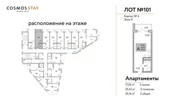 ГОТОВЫЙ БИЗНЕС ПОД КЛЮЧ ДОХОД ОТ 1 500 000 руб. с первого года деятельности отеля. Продаются апартаменты от Застройщика в строящемся комплексе COSMOS STAY HIDDEN YALTA, под управлением ведущего отельера в России COSMOS HOTEL GROUP (COSMOS HOTEL GROUP это Аккредитованная Управляющая компания международных гостиничных операторов). ИНВЕСТИЦИОННЫЕ ПРЕИМУЩЕСТВА КОМПЛЕКСА: - Первый COSMOS STAY в Ялте- Гостиничный номер с ремонтом, мебелью и техникой - Управление номерным фондом командой COSMOS- Прозрачность управления - Гарантированная круглогодичная загрузка комплекса - Глубокое знание и владение бизнесом - БИЗНЕС-МОДЕЛЬ Будущего: круглогодичный и пассивный доход - Среднегодовая доходность 22 % О КОМПЛЕКСЕ COSMOS STAY HIDDEN YALTA это комплекс апартаментов из 5 корпусов для отдыха с собственной развитой инфраструктурой. Находится в Ялте у подножья горы Могаби на южном берегу Крыма, вблизи с живописным горнолесным заповедником, у подножья горы Ай-Петри. Из апартаментов комплекса открываются завораживающие виды на горные вершины и Черное море. ЭТАЖНОСТЬ КОРПУСОВ: до 9 этажей Срок сдачи объекта: IV-кв. 2026г. Квадратура апартаментов: от 25м2 до 80,4 м2. Апартаменты с отделкой и мебелью. ИНФРАСТРУКТУРА КОМПЛЕКСА - Лаунж-зоны - Спа-центр - Детские пространства и площадки для спорта - Всесезонный бассейн - Пространства для медитаций и занятий йогой - Ресторан и Лобби - Супермаркеты и аптека - Консьерж-сервис полного цикла обслуживания с управлением - Экотропы для прогулок - Канатная дорога в 20 минутах КОНЦЕПЦИЯ АПАРТ-КОМПЛЕКСА Предлагает уникальный формат отдыха в стиле Retreat. Здесь созданы идеальные условия комфортного отдыха, заботы о вашем ментальном и физическом здоровье, вдали от городской суеты, в окружении векового леса и природы. Здесь вы найдете всё необходимое для восстановления и перезагрузки. Рассрочка от застройщика, подробности уточняйте в Отделе продаж. Строительство ведется при проектном финансировании СБЕРБАНКА, согласно ФЗ-214. Продажа через эскроу-счета без комиссий и переплат.