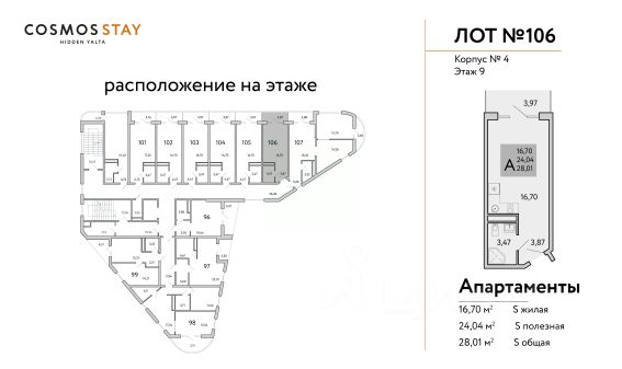 COSMOS STAY HIDDEN YALTA - это комплекс апартаментов из 5 корпусов для отдыха с собственной развитой инфраструктурой. Находится в Ялте у подножья горы Могаби на южном берегу Крыма, вблизи с живописным горно-лесным заповедником. Из апартаментов комплекса открываются завораживающие виды на горные вершины и Чёрное море. В шаговой доступности могабинские озера. Находится на подножии Ай-Петри, что позволяет комфортно добраться до горных склонов. До центра Ялты 10 минут на машине, как и до моря. Концепция апарт-комплекса предполагает круглогодичный комфортный отдых в формате retreat, с заботой о ментальном и физическом здоровье. Всё для Вашего восстановления и перезагрузки, для размеренной и комфортной жизни. Целебный морской воздух и благодатный климат. В комплексе создана атмосфера респектабельной среды для жизни: - собственная инфраструктура; - свой зеленый двор; - безопасность; - детские пространства; - собственная инфраструктура; - свой зеленый двор; - безопасность; - детские пространства; - лаунж-зоны; - будет присвоен статус 3 звезды и работать отельный оператор; - пространства для медитаций и занятий йогой; - ресторан; - индивидуальные келлеры для габаритного инвентаря; - всесезонный бассейн; Консьерж-сервис полного цикла обслуживания с опцией управления недвижимостью - разрешит любой возникающий вопрос. Строительство ведется при проектном финансировании СБЕРБАНКА, ФЗ-214. Продажа через эскроу-счет без комиссий. Завершение строительства - 3 квартал 2026 года Передача ключей до 31.12.2026 Ремонт и оснащение апартаментов: декабрь 2026-апрель 2027 Запуск апарт-отеля в управление - июнь 2027