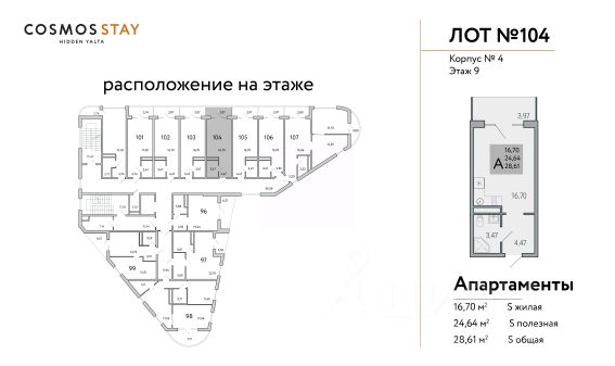 ГОТОВЫЙ БИЗНЕС ПОД КЛЮЧ ДОХОД ОТ 1 500 000 руб. с первого года деятельности отеля. Продаются апартаменты от Застройщика в строящемся комплексе COSMOS STAY HIDDEN YALTA, под управлением ведущего отельера в России COSMOS HOTEL GROUP (COSMOS HOTEL GROUP это Аккредитованная Управляющая компания международных гостиничных операторов). ИНВЕСТИЦИОННЫЕ ПРЕИМУЩЕСТВА КОМПЛЕКСА: - Первый COSMOS STAY в Ялте- Гостиничный номер с ремонтом, мебелью и техникой - Управление номерным фондом командой COSMOS- Прозрачность управления - Гарантированная круглогодичная загрузка комплекса - Глубокое знание и владение бизнесом - БИЗНЕС-МОДЕЛЬ Будущего: круглогодичный и пассивный доход - Среднегодовая доходность 22 % О КОМПЛЕКСЕ COSMOS STAY HIDDEN YALTA это комплекс апартаментов из 5 корпусов для отдыха с собственной развитой инфраструктурой. Находится в Ялте у подножья горы Могаби на южном берегу Крыма, вблизи с живописным горнолесным заповедником, у подножья горы Ай-Петри. Из апартаментов комплекса открываются завораживающие виды на горные вершины и Черное море. ЭТАЖНОСТЬ КОРПУСОВ: до 9 этажей Срок сдачи объекта: IV-кв. 2026г. Квадратура апартаментов: от 25м2 до 80,4 м2. Апартаменты с отделкой и мебелью. ИНФРАСТРУКТУРА КОМПЛЕКСА - Лаунж-зоны - Спа-центр - Детские пространства и площадки для спорта - Всесезонный бассейн - Пространства для медитаций и занятий йогой - Ресторан и Лобби - Супермаркеты и аптека - Консьерж-сервис полного цикла обслуживания с управлением - Экотропы для прогулок - Канатная дорога в 20 минутах КОНЦЕПЦИЯ АПАРТ-КОМПЛЕКСА Предлагает уникальный формат отдыха в стиле Retreat. Здесь созданы идеальные условия комфортного отдыха, заботы о вашем ментальном и физическом здоровье, вдали от городской суеты, в окружении векового леса и природы. Здесь вы найдете всё необходимое для восстановления и перезагрузки. Рассрочка от застройщика, подробности уточняйте в Отделе продаж. Строительство ведется при проектном финансировании СБЕРБАНКА, согласно ФЗ-214. Продажа через эскроу-счета без комиссий и переплат.