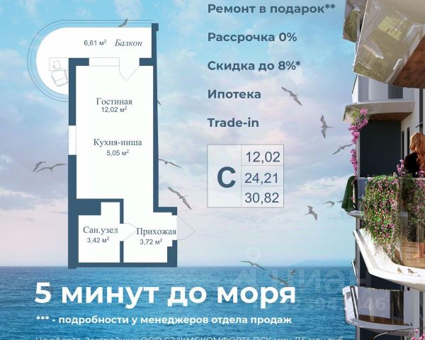 Продаются апартаменты в построенном комплексе. Срок сдачи 4 квартал 2024 года. Альба Дель Маре это комплекс апартаментов бизнес-класса с развитой инфраструктурой. Уютные здания переменной этажности строятся в 5 минутах ходьбы (385 метров) от одного из лучших пляжей Евпатории "Супер Аква Бич". Широкая береговая линия, места для активного отдыха и зоны релакса позволят насладиться отдыхом на любой вкус. Архитектурное решение комплекса создает истинное ощущение Средиземноморья и присутствия на дорогом курорте: скатные черепичные крыши, козырьки и навесы-перголы, арочные завершения проемов, цветовая палитра отделки и фасадов, где используются оттенки желтого, охры, терракоты и бежевого. Переменная этажность здания формирует камерность проекта, создавая прекрасные видовые характеристики для каждого апартамента. Просторные террасы с видом на море, патио с собственным выходом к бассейну на первых этажах комплекса, детская и спортивная площадки, ландшафтный дизайн здесь все создано для роскошного отдыха и расслабления. Территория комплекса апартаментов закрыта и находится под круглосуточным видеонаблюдением, что позволит резидентам и гостям чувствовать безопасность проживания. Концепция комплекса: комфорт проживания с первых дней заселения. Реализация апартаментов осуществляется с полной отделкой под ключ. Собственники апартаментов имеют возможность поручить управление недвижимостью профессиональному оператору, что позволит получать стабильный доход. Автономная газовая котельная позволит не зависеть от внешних отключений отопления., парковочные места на закрытой территории комплекса обеспечат безопасность вашему автомобилю, система центрального кондиционирования создаст комфортную температуру в каждом номере. Жилой комплекс реализуется в соответствии с 214 ФЗ.
