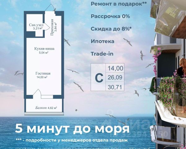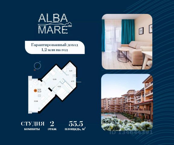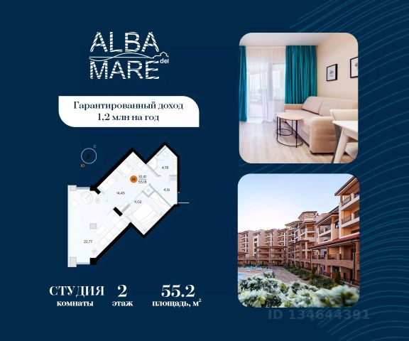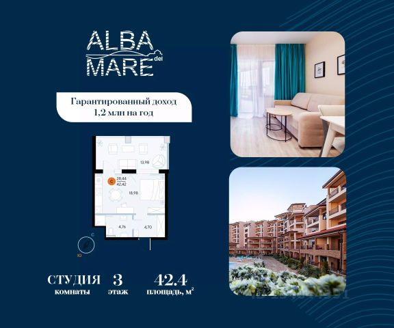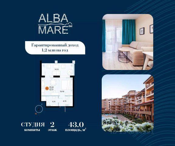 Продаются апартаменты в построенном комплексе. Срок сдачи 4 квартал 2024 года. Альба Дель Маре это комплекс апартаментов бизнес-класса с развитой инфраструктурой. Уютные здания переменной этажности строятся в 5 минутах ходьбы (385 метров) от одного из лучших пляжей Евпатории "Супер Аква Бич". Широкая береговая линия, места для активного отдыха и зоны релакса позволят насладиться отдыхом на любой вкус. Архитектурное решение комплекса создает истинное ощущение Средиземноморья и присутствия на дорогом курорте: скатные черепичные крыши, козырьки и навесы-перголы, арочные завершения проемов, цветовая палитра отделки и фасадов, где используются оттенки желтого, охры, терракоты и бежевого. Переменная этажность здания формирует камерность проекта, создавая прекрасные видовые характеристики для каждого апартамента. Просторные террасы с видом на море, патио с собственным выходом к бассейну на первых этажах комплекса, детская и спортивная площадки, ландшафтный дизайн здесь все создано для роскошного отдыха и расслабления. Территория комплекса апартаментов закрыта и находится под круглосуточным видеонаблюдением, что позволит резидентам и гостям чувствовать безопасность проживания. Концепция комплекса: комфорт проживания с первых дней заселения. Реализация апартаментов осуществляется с полной отделкой под ключ. Собственники апартаментов имеют возможность поручить управление недвижимостью профессиональному оператору, что позволит получать стабильный доход. Автономная газовая котельная позволит не зависеть от внешних отключений отопления., парковочные места на закрытой территории комплекса обеспечат безопасность вашему автомобилю, система центрального кондиционирования создаст комфортную температуру в каждом номере. Жилой комплекс реализуется в соответствии с 214 ФЗ.