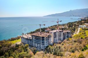 Продаётся студия 80 площадью 49,68 м, расположенная на 1 этаже второй секции апарт-комплекса "Кедровый". Из окон и балкона 6,13 м открывается вид на море и зелёные просторы Никитского ботанического сада - идеальное окружение для спокойной жизни и отдыха. Компактная и удобная планировка включает жилую зону, кухню, санузел, коридор и балкон. Высокие потолки 3,3 метра, большое окно и предчистовая отделка позволяют наполнить пространство светом и оформить интерьер под себя. Отличный выбор для первого жилья у моря или инвестиции с потенциалом. Видовые апартаменты бизнес-класса расположены в двух восьмиэтажных корпусах, обращенных фасадами к Ялтинскому заливу. Всего в апарт-комплексе "Кедровый" 207 просторных апартаментов, в том числе 13 двухэтажных на верхнем этаже. Над подземным паркингом цокольный этаж со СПА, кафе и иными нежилыми помещениями. Всего в пракинге 76 машиномест средней площадью 18м2. Есть места для зарядки электромобилей От ворот "Кедровый" всего 150 м до моря: чтобы спуститься к пляжу достаточно пройти по живописной пологой дороге, усаженой лавандой и можжевельником. Но искупаться можно и не покидая своего двора: в комплексе есть собственные открытые бассейны для детей и взрослых.