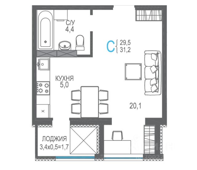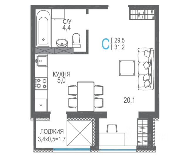Продаётся квартира площадью 31.29 м2 в новом ЖК СОК