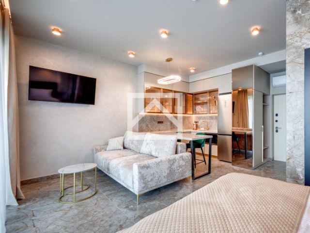 Арт. 127068839 Предлагается возможность купить студию с дизайнерским ремонтом и прекрасным видом на море, расположенную в динамично развивающейся курортной зоне Ялты, в современном комплексе премиум-класса — Sky Plaza 3.0. Апартаменты (33 м²) расположены на 8 этаже 9-этажного комплекса. Ключевыми преимуществами апартаментов являются — новый дизайнерский ремонт, полная готовность к проживанию, инвестиционная привлекательность, шикарные видовые характеристики и статус комплекса. Планировочное решение: +прихожая, +кухня-гостиная с выходом на видовую террасу, +спальная зона, +совмещенный санузел с душевой, +терраса с панорамным видом на море, обустроенная летней мебелью для отдыха. В апартаментах выполнен стильный дизайнерский ремонт с полным обустройством премиальной мебелью и современной бытовой техникой. Каждая деталь продумана до мелочей, чтобы обеспечить максимальный комфорт и создать ощущение уюта с первых минут пребывания. Sky Plaza 3.0 — это архитектура высочайшего класса с безупречными планировочными решениями. Комплекс является одним из популярных в Ялте на сегодняшний день. Монументальное 9-этажное здание с большой площадью остекления, компактными балконами и продуманными планировками апартаментов. В комплексе 209 шикарных апартаментов, спланированных и построенных согласно всем современным требованиям и стандартам. О комплексе Sky Plaza 3.0: +Круглосуточная охрана; +Видеонаблюдение; +Панорамное остекление; +Подземный паркинг; +Собственная газовая котельная. Ближайшая инфраструктура: +Ультрасовременные карты пляжа Sky Beach, Чайка, Kiki Beach и пляжи отеля Ялта Интурист; +Супермаркеты; +Аптеки; +Рестораны; +Массандровский парк. Расположение: +До Ялтинской набережной 15-20 минут пешком; +До ближайшего пляжа 2 минуты пешком; +До гостиничного комплекса Ялта-Интурист 7 минут пешком; +До Симферополя/Севастополя примерно 1 час 20 минут езды. Заинтересовали апартаменты? Документы готовы к сделке. Звоните!