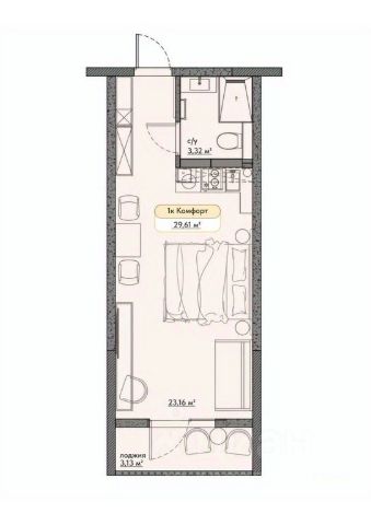 Пространство квартиры организовано таким образом, чтобы обеспечить комфортное проживание: явный пример тщательного подхода к планированию каждого квадратного метра. Совмещённый санузел выполнен с использованием современных материалов, что добавляет дополнительное ощущение стиля и уюта.