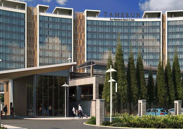 "Tamerun" - морская резиденция на Западном берегу Крыма, между городами Евпатория и Саки. Резиденция "Tamerun" представляет собой современный комплекс из четырёх корпусов высотой 9 и 12 этажей, гармонично вписанных в живописный ландшафт. Интерьеры выполнены в изысканном элегантном стиле с применением премиальных материалов — натурального мрамора, ценных пород дерева и высококачественной кожи. Просторные помещения наполнены естественным светом благодаря большим панорамным окнам, открывающим завораживающие виды на Черное море. Атмосфера резиденции пропитана уютом и гармонией, создавая идеальные условия для комфортной жизни и отдыха. Рядом с "Tamerun" находится Сасыкский заказник и самое крупное в Крыму солёное розовое озеро Сасык-Сиваш. На территории резиденции находится открытый бассейн с подогревом, окружённый шезлонгами и зоной отдыха, где можно наслаждаться теплыми лучами солнца и свежим морским бризом. Для любителей активного отдыха предусмотрен теннисный корт и фитнес-зал, оборудованный новейшими тренажёрами. В солнечной резиденции есть всё для жизни и интересного отдыха: собственный песчаный пляж и теннисный корт, бассейны с морской водой, рестораны и летнее кафе, зона СПА и фитнес-центр, общественно-деловые пространства и подземный паркинг. Профессиональная сервисная компания с международным опытом возьмёт на себя все операционные вопросы по управлению и эксплуатации, обеспечивая 5-звёздочный уровень обслуживания.