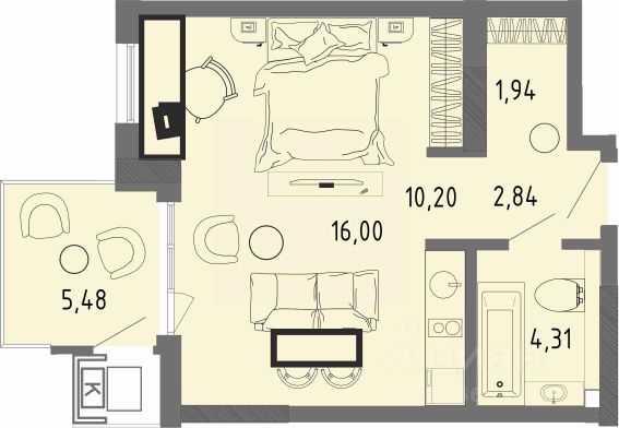 Продаётся квартира площадью 31.29 м2 в новом ЖК СОК