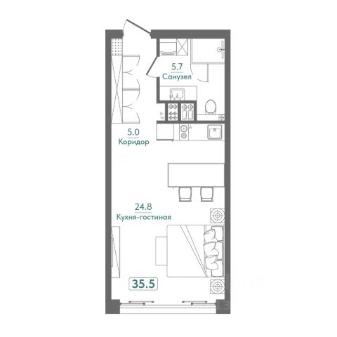 Общая площадь квартиры 55 кв.м грамотно распланирована на просторную прихожую, комфортный санузел, роскошную спальню и просторную кухню-гостиную, из окон которой открывается потрясающий вид на Михайловское озеро и волшебные закаты над ним.