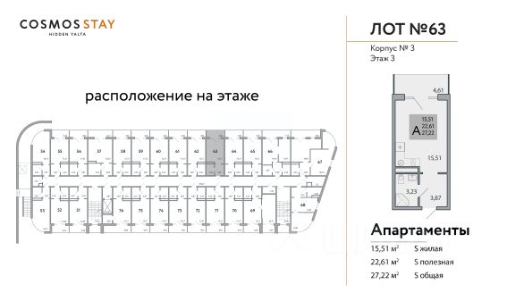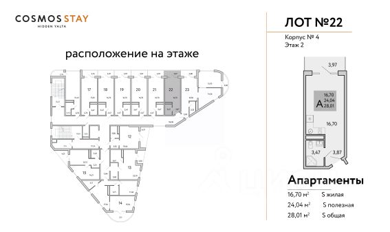ГОТОВЫЙ БИЗНЕС ПОД КЛЮЧ ДОХОД ОТ 1 500 000 руб. с первого года деятельности отеля. Продаются апартаменты от Застройщика в строящемся комплексе COSMOS STAY HIDDEN YALTA, под управлением ведущего отельера в России COSMOS HOTEL GROUP (COSMOS HOTEL GROUP это Аккредитованная Управляющая компания международных гостиничных операторов). ИНВЕСТИЦИОННЫЕ ПРЕИМУЩЕСТВА КОМПЛЕКСА: - Первый COSMOS STAY в Ялте - Гостиничный номер с ремонтом, мебелью и техникой - Управление номерным фондом командой COSMOS - Прозрачность управления - Гарантированная круглогодичная загрузка комплекса - Глубокое знание и владение бизнесом - БИЗНЕС-МОДЕЛЬ Будущего: круглогодичный и пассивный доход - Среднегодовая доходность 22 % О КОМПЛЕКСЕ COSMOS STAY HIDDEN YALTA это комплекс апартаментов из 5 корпусов для отдыха с собственной развитой инфраструктурой. Находится в Ялте у подножья горы Могаби на южном берегу Крыма, вблизи с живописным горнолесным заповедником, у подножья горы Ай-Петри. Из апартаментов комплекса открываются завораживающие виды на горные вершины и Черное море. ЭТАЖНОСТЬ КОРПУСОВ: до 9 этажей Срок сдачи объекта: IV-кв. 2026г. Квадратура апартаментов: от 25м2 до 80,4 м2. Апартаменты с отделкой и мебелью. ИНФРАСТРУКТУРА КОМПЛЕКСА - Лаунж-зоны - Спа-центр - Детские пространства и площадки для спорта - Всесезонный бассейн - Пространства для медитаций и занятий йогой - Ресторан и Лобби - Супермаркеты и аптека - Консьерж-сервис полного цикла обслуживания с управлением - Экотропы для прогулок - Канатная дорога в 20 минутах КОНЦЕПЦИЯ АПАРТ-КОМПЛЕКСА Предлагает уникальный формат отдыха в стиле Retreat. Здесь созданы идеальные условия комфортного отдыха, заботы о вашем ментальном и физическом здоровье, вдали от городской суеты, в окружении векового леса и природы. Здесь вы найдете всё необходимое для восстановления и перезагрузки. Рассрочка от застройщика, подробности уточняйте в Отделе продаж. Строительство ведется при проектном финансировании СБЕРБАНКА, согласно ФЗ-214. Продажа через эскроу-счета без комиссий и переплат.