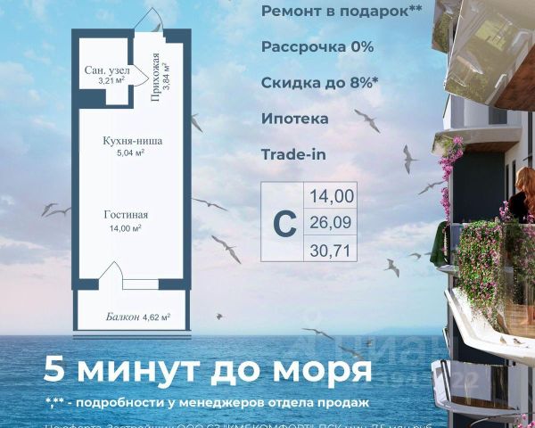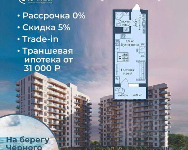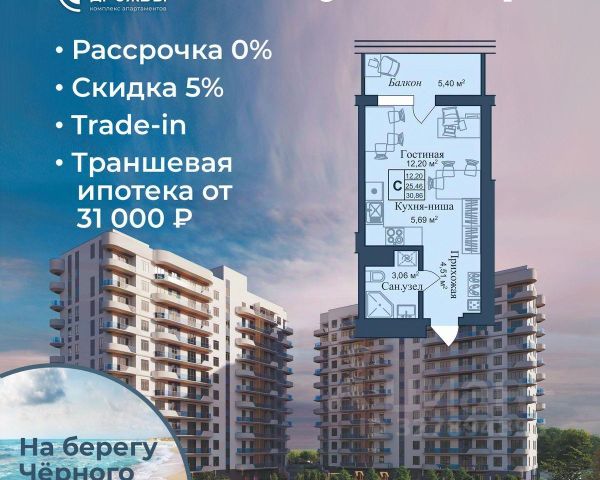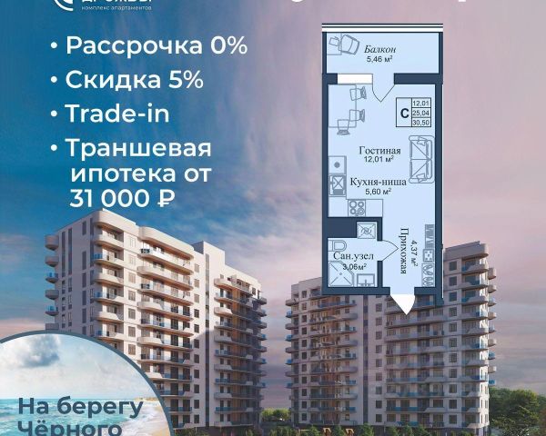 АКЦИИ: * Ипотека от 40 000 руб. в месяц * Рассрочка 0% до 2028г. * Бронь на 30 дней * 5 мин до моря пешком, планировки от 30 кв.м. * Высота потолков 3 м , предчистовая и чистовая отделка * Доходность инвестиций от 40% годовых. * Сдача в аренду от управляющей компании (доверительное управление) позволяет получать доход от сдачи апартаментов без вашего участия * Безопасная сделка по ФЗ-214/эскроу-счёта "Аллея Дружбы" — это комплекс апартаментов бизнес-класса в Евпатории, расположенный в 5 минутах прогулки от золотистых пляжей Чёрного моря. Два современных 12-этажных корпуса с панорамными видами на море объединены стильным стилобатом с центральным входом и бутиковыми retail-площадями, а закрытая территория и подземный паркинг обеспечивает приватность и безопасность. АРХИТЕКТУРА И КОНСТРУКТИВНЫЕ ОСОБЕННОСТИ: • 12-этажное здание в авторском архитектурном стиле • Высота потолков (от 2,9 м до 3,1 м) • Эксклюзивное решение для первых этажей (высота потолков 3,4м) • Евро планировки с террасами и гардеробными • Панорамное ламинированное остекление • Индивидуальные келлеры • Видовые лоты на море • Высокоскоростные лифты по концепции 5* отеля • Предусмотрено резервное электроснабжение • По проекту предусмотрено место для кондиционера и практическое решение для маскировки коммуникаций ЛОКАЦИЯ И ОКРУЖЕНИЕ: • До центра Евпатории - 7 минут на машине • Пляж - всего 5 минут пешком • Рядом с комплексом развитая инфраструктура (рестораны, магазины, кафе, медицинские учреждения, санатории) ГОСТЕПРИИМСТВО И БЕЗУПРЕЧНЫЕ СЕРВИСЫ: • Управляющая компания премиум-класса • Консъерж-сервис 24/7 • Доставки продуктов и готовой еды • Зона ресепшн оформлена в стилистике комплекса • Лобби с атмосферным кафе и зонами для чтения • Премиальное решение для мест общего пользования • Интерактивная детская комната для самых маленьких • Пункты выдачи товаров от маркетплейсов • Гостевые парковочные места • Организовано место для хранения колясок ваших малышей • Ремонт на выбор "Комфорт-формат" и "Гранд-формат" БЕЗОПАСНОСТЬ И ТЕХНОЛОГИИ СПОКОЙСТВИЯ: • Закрытая территория, двор без машин • Система контроля доступа (строго по электронным пропускам) • Подземный паркинг с тремя типами машиномест • Выделенные места для велосипедов • Камеры видеонаблюдения • Круглосуточный ресепшн • Телеметрия - автоматический сбор и передача данных с приборов учета апартамента минимизирует ошибки и мошенничество • Система умного апартамента с дистанционным управлением БЛАГОУСТРОЙСТВО ТЕРРИТОРИИ: • Ландшафтный дизайн по проекту (2 334 м² озеленения) • Прогулочные аллеи и зоны отдыха для расслабления и медитации • Коворкинг-зоны с высокоскоростным Wi-Fi для бизнес-переговоров • Детские и спортивные площадки • В апарт-комплексе вас ждут мини-маркет и магазин повседневных товаров • Специальное пространство для курения • Выделенная площадка для игры в волейбол и баскетбол РЕЛАКС И ДОСУГ: • На территории комплекса 2 отдельных бассейна: летний бассейн с выделенной зоной для детей и крытый те