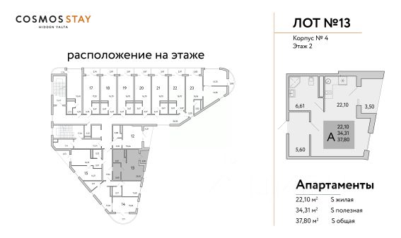 COSMOS STAY HIDDEN YALTA - это комплекс апартаментов из 5 корпусов для отдыха с собственной развитой инфраструктурой. Находится в Ялте у подножья горы Могаби на южном берегу Крыма, вблизи с живописным горно-лесным заповедником. Из апартаментов комплекса открываются завораживающие виды на горные вершины и Чёрное море. В шаговой доступности могабинские озера. Находится на подножии Ай-Петри, что позволяет комфортно добраться до горных склонов. До центра Ялты 10 минут на машине, как и до моря. Концепция апарт-комплекса предполагает круглогодичный комфортный отдых в формате retreat, с заботой о ментальном и физическом здоровье. Всё для Вашего восстановления и перезагрузки, для размеренной и комфортной жизни. Целебный морской воздух и благодатный климат. В комплексе создана атмосфера респектабельной среды для жизни: - собственная инфраструктура; - свой зеленый двор; - безопасность; - детские пространства; - собственная инфраструктура; - свой зеленый двор; - безопасность; - детские пространства; - лаунж-зоны; - будет присвоен статус 3 звезды и работать отельный оператор; - пространства для медитаций и занятий йогой; - ресторан; - индивидуальные келлеры для габаритного инвентаря; - всесезонный бассейн; Консьерж-сервис полного цикла обслуживания с опцией управления недвижимостью - разрешит любой возникающий вопрос. Строительство ведется при проектном финансировании СБЕРБАНКА, ФЗ-214. Продажа через эскроу-счет без комиссий. Завершение строительства - 3 квартал 2026 года Передача ключей до 31.12.2026 Ремонт и оснащение апартаментов: декабрь 2026-апрель 2027 Запуск апарт-отеля в управление - июнь 2027